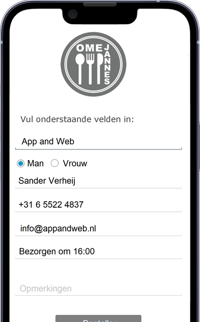 (bv: naam en adres bij bezorgen, tafelnummer bij terras of tafel bestelling, telefoonnummer bij afhalen)