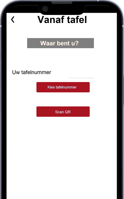 Wanneer vanaf een tafel besteld wordt, zal de gast vooraf een tafelnummer moeten ingeven. Dit kan door intypen of middels een QR code in te scannen.