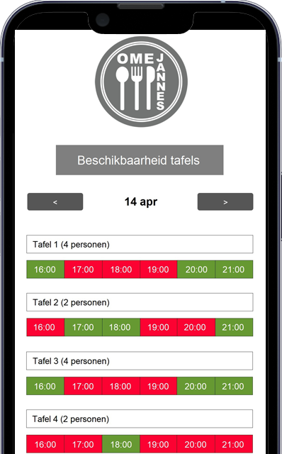 Het is meteen duidelijk welke tafel op specifieke tijden wel of niet beschikbaar zijn.